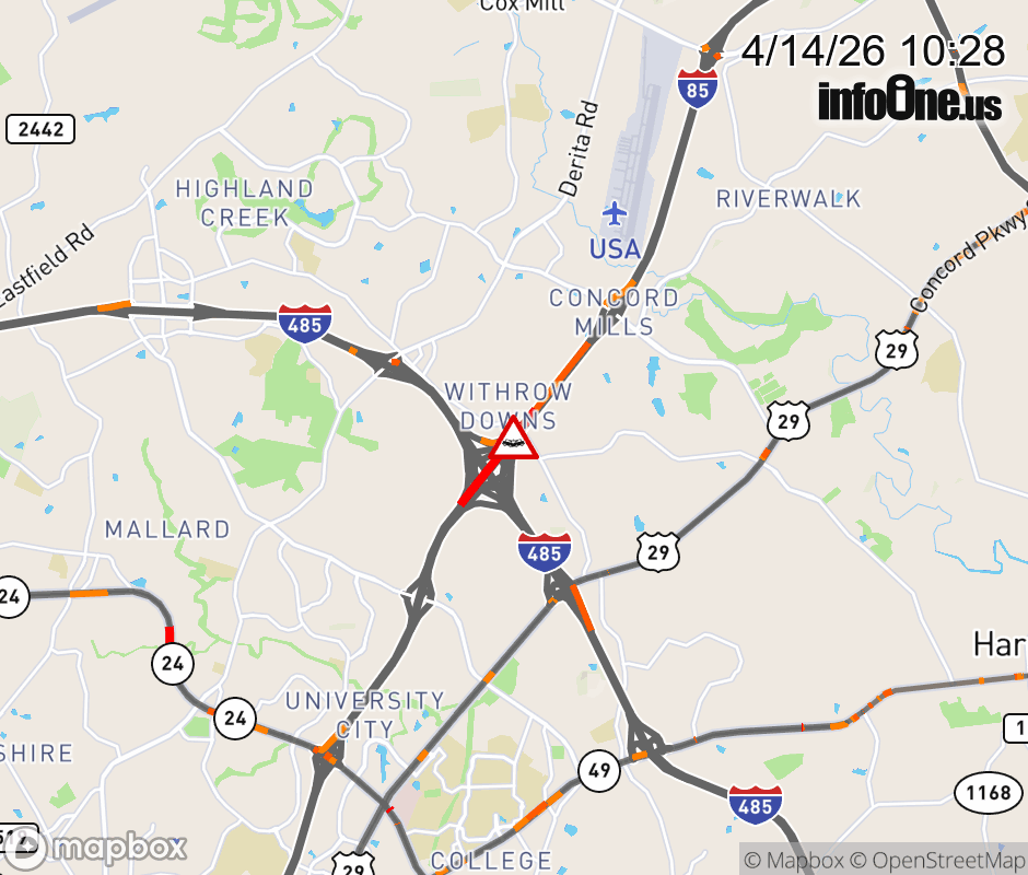 The left shoulder is closed after Exit 48( I-485 ). Updated: Tue 4/14/26 10:28 AM EDT ![]() Updated: Tue 4/14/26 10:28 AM EDT |