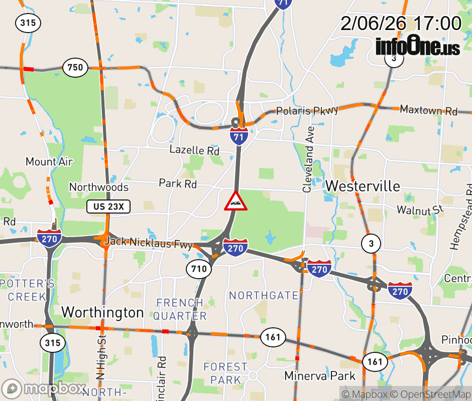 The right shoulder is blocked on I-71 North beyond I-270 (North Side), due to a disabled vehicle. Updated: Fri 2/6/26 5:00 PM EST ![]() Updated: Fri 2/6/26 5:00 PM EST |