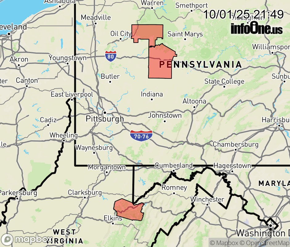 Canceled 10/2/25 2:51 AM Frost Advisory issued October 1 at 9:47PM EDT until October 2 at 9:00AM EDT by NWS Pittsburgh PA * WHAT... Temperatures as low as 34 will result in frost formation. * WHERE... In Pennsylvania, Forest and Jefferson PA Counties. In West Virginia, Eastern Tucker County. * WHEN... From 2 AM to 9 AM EDT Thursday. * IMPACTS... Frost could harm sensitive outdoor vegetation. Sensitive outdoor plants may be killed if left uncovered. ![]() |