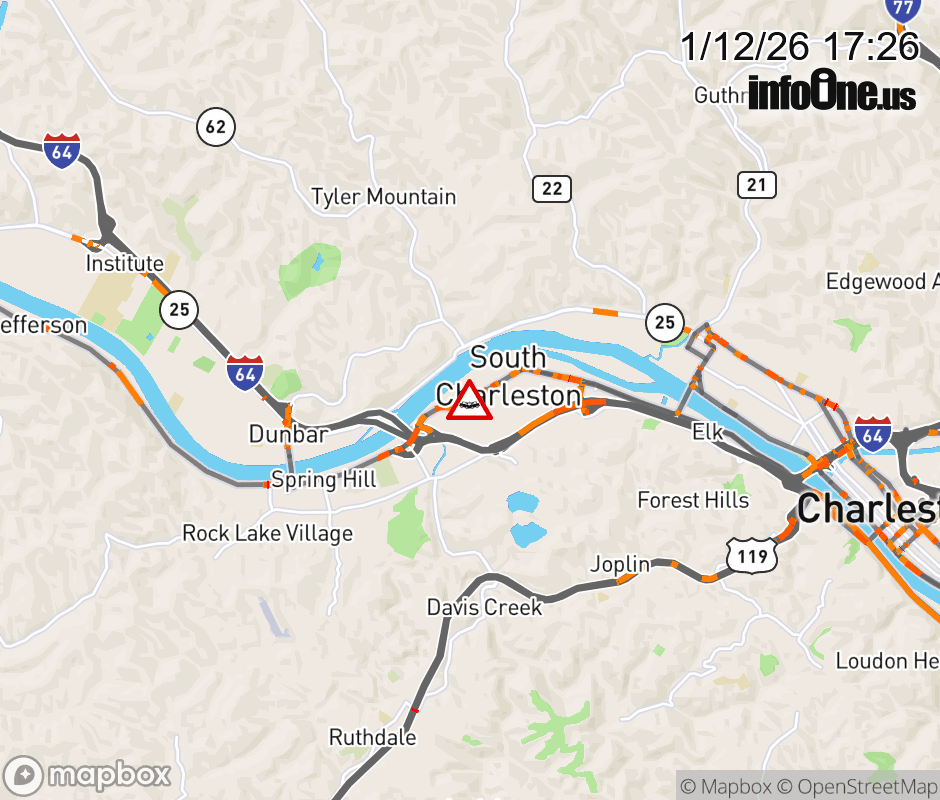 Vehicle Crash on US-60 (MacCorkle Avenue at Industrial Way). The westbound road is closed. Updated: Mon 1/12/26 5:26 PM EST ![]() Updated: Mon 1/12/26 5:26 PM EST |