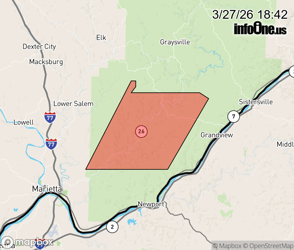 Canceled 3/28/26 1:46 AM Flood Warning issued March 27 at 6:41PM EDT until March 28 at 7:00AM EDT by NWS Charleston WV * WHAT... Flooding caused by excessive rainfall continues. * WHERE... A portion of southeast Ohio, including the following county, Washington. * WHEN... Until 700 AM EDT Saturday. * IMPACTS... Flooding of rivers, creeks, streams, and other low-lying and flood-prone locations is imminent or occurring. * ADDITIONAL DETAILS... - At 639 PM EDT, flooding of creeks and streams in the warned area is ongoing. This includes the Little Muskingum River in Northeast Washington County. - Some locations that will experience flooding include... mainly rural areas of Northeastern Washington County - http://www.weather.gov/safety/flood ![]() |