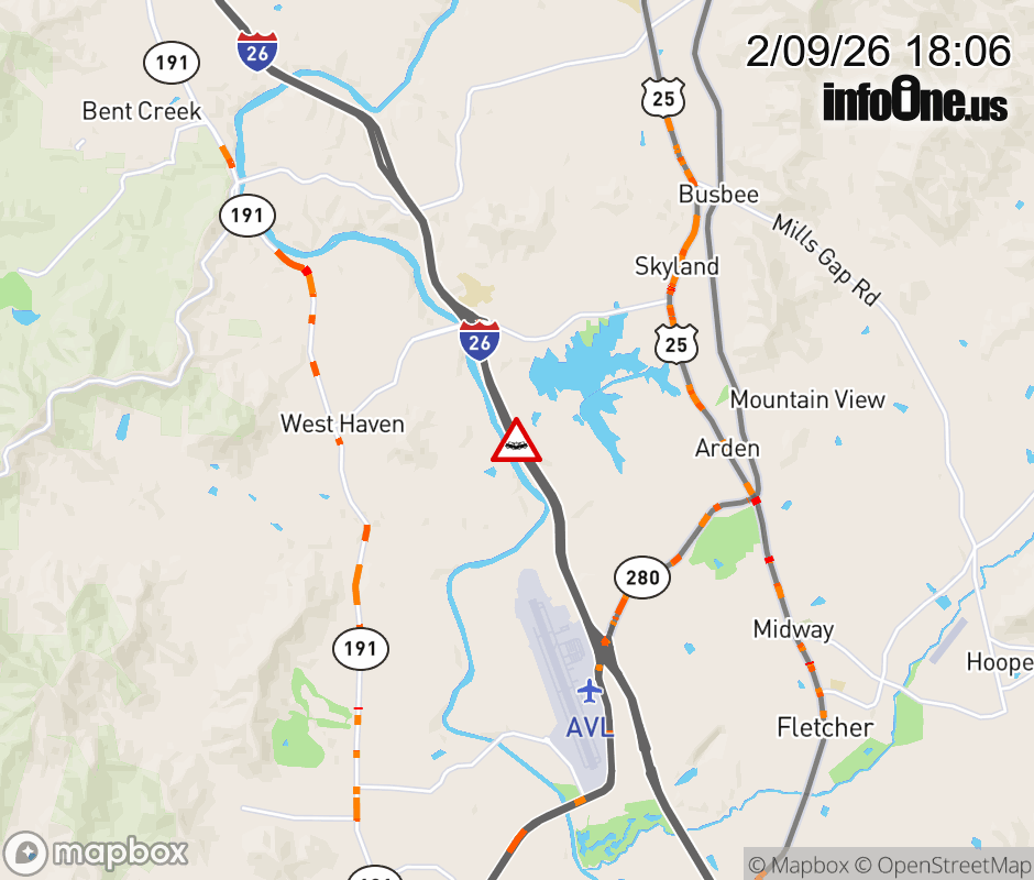 The left shoulder is closed 1.5 miles prior to Exit 37, NC 146, (Long Shoals Road). Updated: Mon 2/9/26 6:06 PM EST ![]() Updated: Mon 2/9/26 6:06 PM EST |