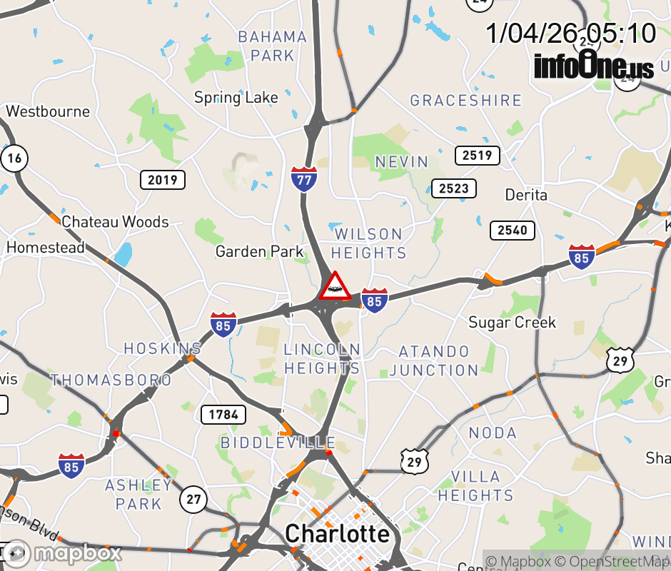 The right ramp lane is closed at Exit 38 (I-77). ![]() |