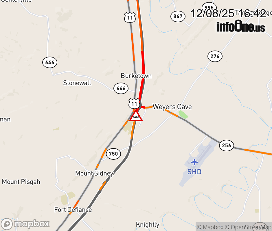 On I-81 at mile marker 234.9 in the County of Augusta, motorists can expect delays due to a vehicle crash. The south right shoulder is closed. Traffic backups are approximately 3.0 miles. Updated: Mon 12/8/25 4:42 PM EST ![]() Updated: Mon 12/8/25 4:42 PM EST |