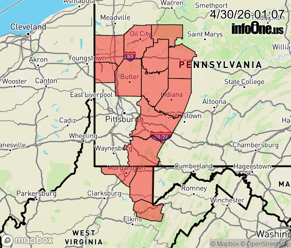 Canceled 4/30/26 5:15 AM Frost Advisory issued April 30 at 1:06AM EDT until May 1 at 9:00AM EDT by NWS Pittsburgh PA * WHAT... Temperatures as low as 32 will result in frost formation. * WHERE... Portions of northwest, southwest, and western Pennsylvania and northern West Virginia. * WHEN... From midnight tonight to 9 AM EDT Friday. * IMPACTS... Frost could harm sensitive outdoor vegetation. Sensitive outdoor plants may be killed if left uncovered. ![]() |