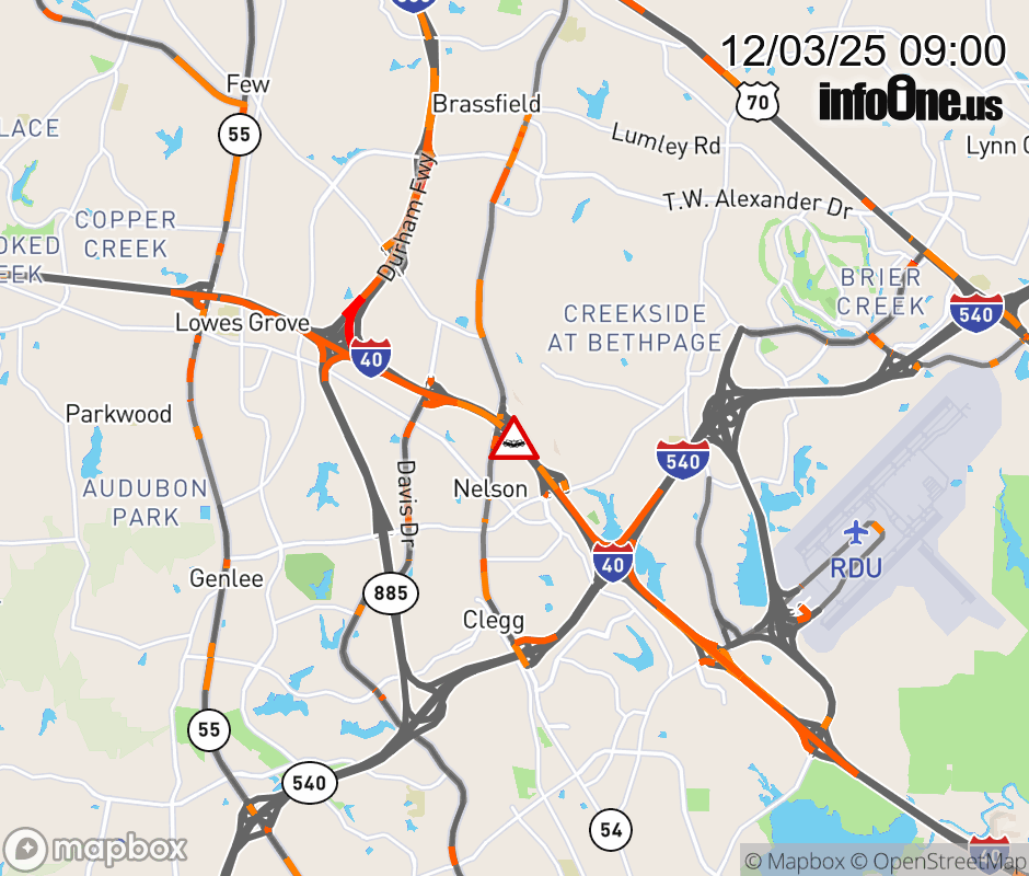The right shoulder is closed past Exit 281 (S Miami Blvd). Updated: Wed 12/3/25 9:00 AM EST ![]() Updated: Wed 12/3/25 9:00 AM EST |
