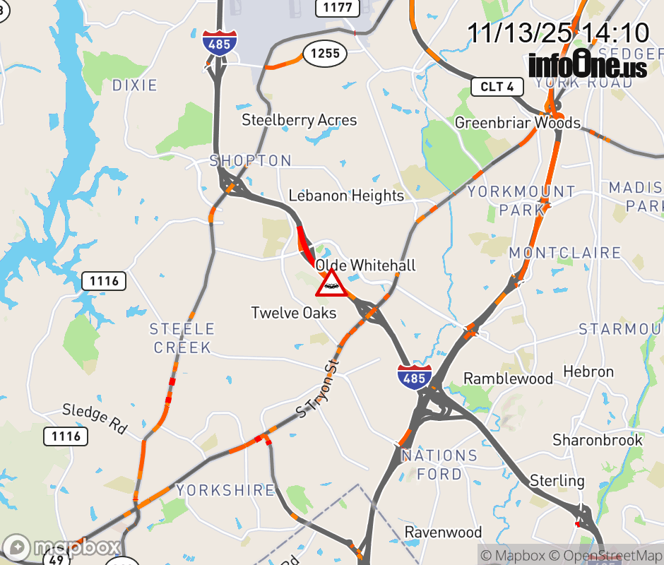 The left shoulder is closed after Exit 3 (Arrowood Rd.). Updated: Thu 11/13/25 2:10 PM EST ![]() Updated: Thu 11/13/25 2:10 PM EST |