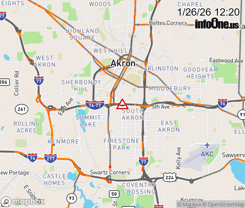 The left lane is blocked on I-76 West/I-77 North beyond SR-8, due to a crash. ![]() |