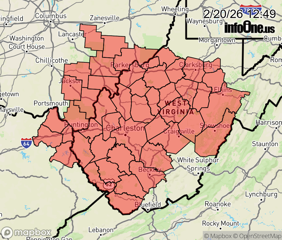 Canceled 2/20/26 7:00 PM Special Weather Statement issued February 20 at 12:48PM EST by NWS Charleston WV Strong winds are moving through the area behind the passage of a cold front. Southwest winds of 15 to 25 mph with gusts up to 50 mph may continue for the rest of the afternoon before diminishing toward evening. These gusty winds will blow around unsecured objects. ![]() |