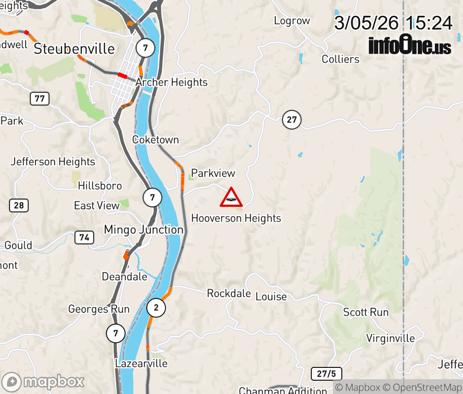 Vehicle Crash on WV-27 (Eldersville Road from MP 1.4 to MP 2.2. Updated: Thu 3/5/26 3:24 PM EST ![]() Updated: Thu 3/5/26 3:24 PM EST |