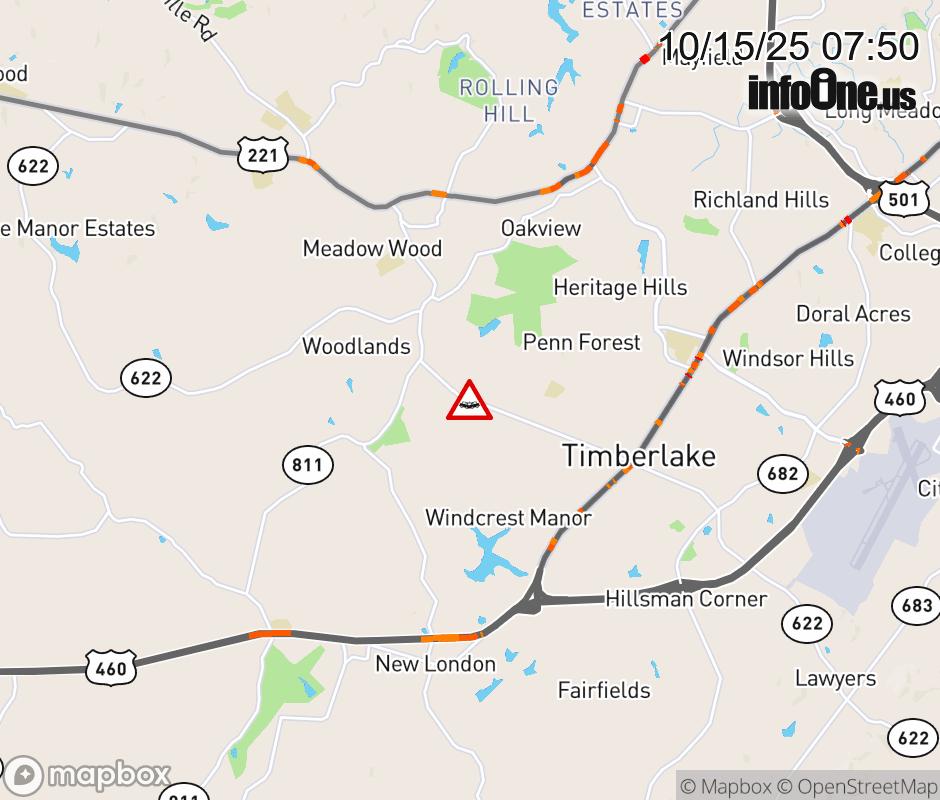 On Rt. 622 East in the County of Bedford, in the vicinity of Forest Park Dr; Rt. 1526N/S (Bedford County), motorists can expect delays due to a vehicle crash. Lane closures exist. ![]() |