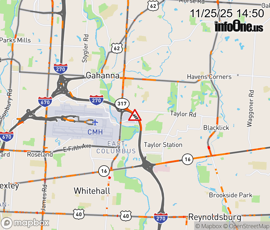 The left lane is blocked on I-270 North at SR-317/Hamilton Rd, due to repairs/maintenance. ![]() |