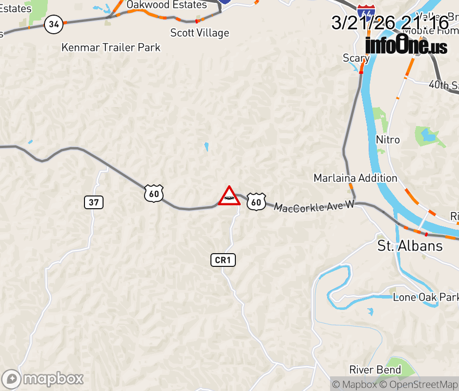Vehicle Crash on US-60E on US-60 (Quarrier St). ![]() |