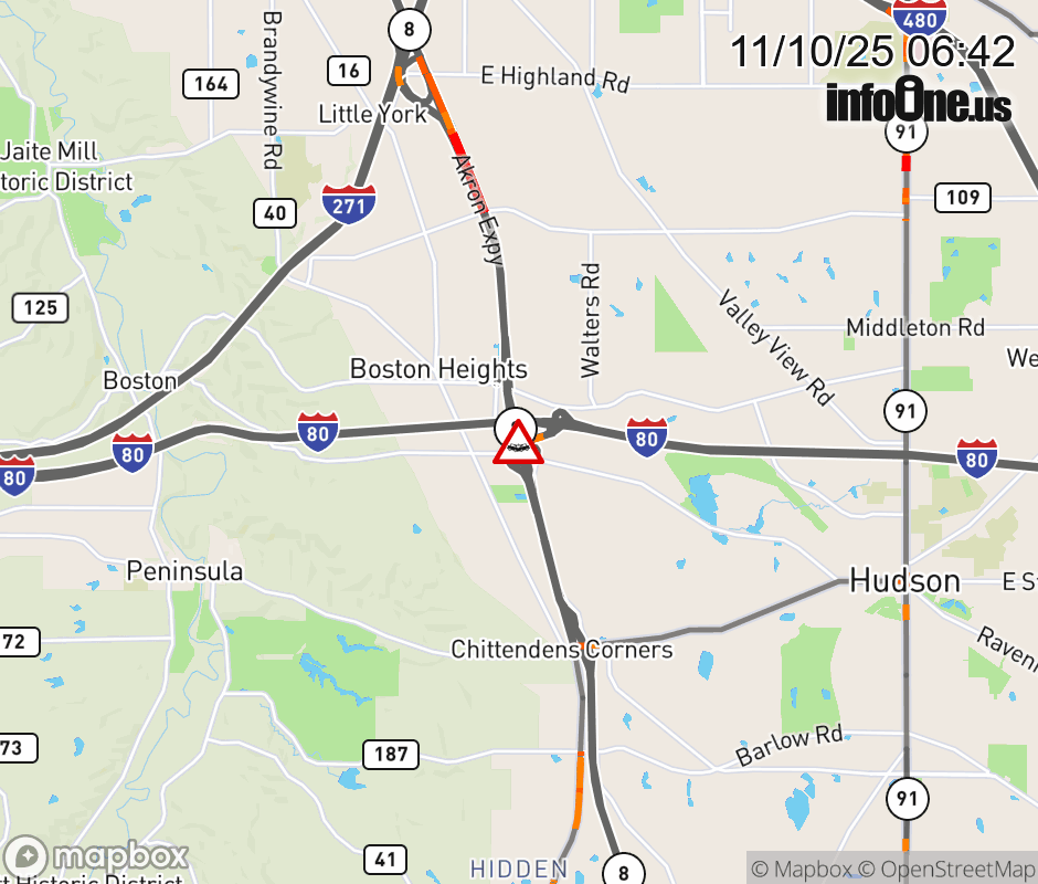 Expect lane closures on SR-8 South beyond I-80 (Ohio Turnpike), due to a crash. ![]() |