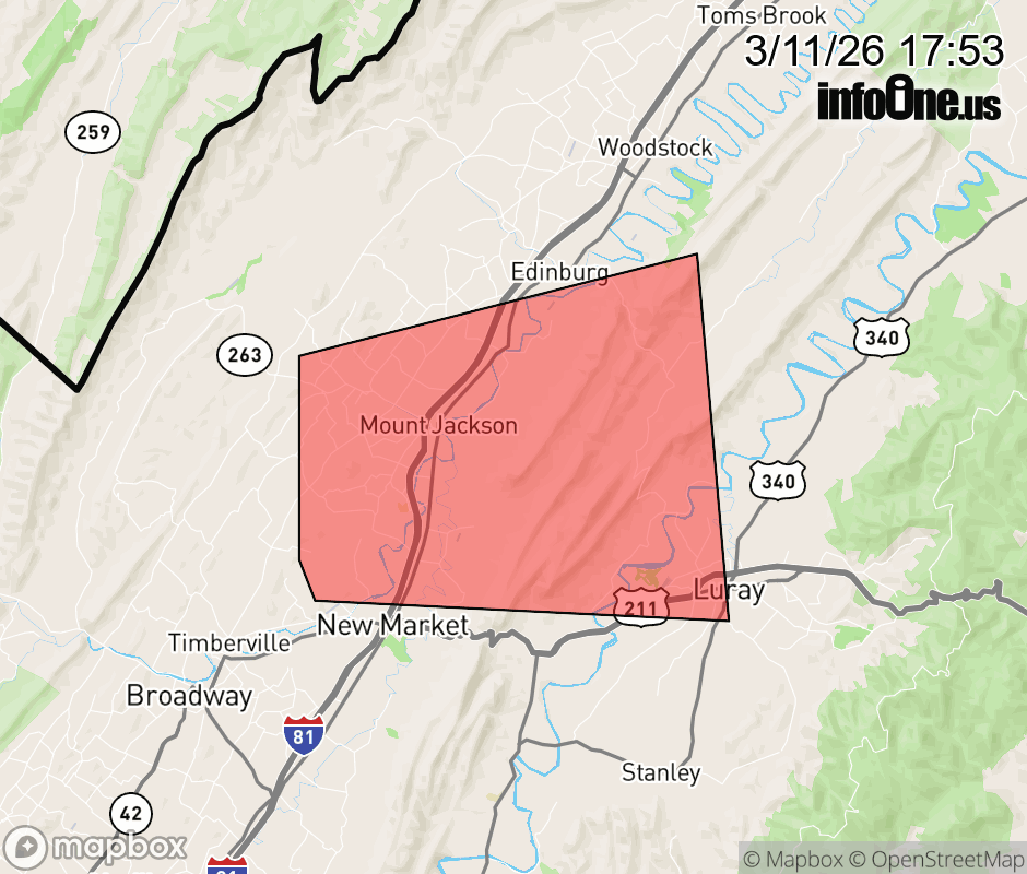 Canceled 3/11/26 6:00 PM Severe Thunderstorm Warning issued March 11 at 5:52PM EDT until March 11 at 6:00PM EDT by NWS Baltimore MD/Washington DC At 551 PM EDT, a severe thunderstorm was located over Mount Jackson, or 12 miles southwest of Woodstock, moving east at 45 mph. HAZARD...60 mph wind gusts. SOURCE...Radar indicated. IMPACT...Damaging winds will cause some trees and large branches to fall. This could injure those outdoors, as well as damage homes and vehicles. Roadways may become blocked by downed trees. Localized power outages are possible. Unsecured light objects may become projectiles. Locations impacted include... Luray, Mount Jackson, New Market, Hawkinstown, Kings Crossing, Shenandoah Caverns, Forestville, Mount Clifton, Hamburg, and Quicksburg. ![]() |