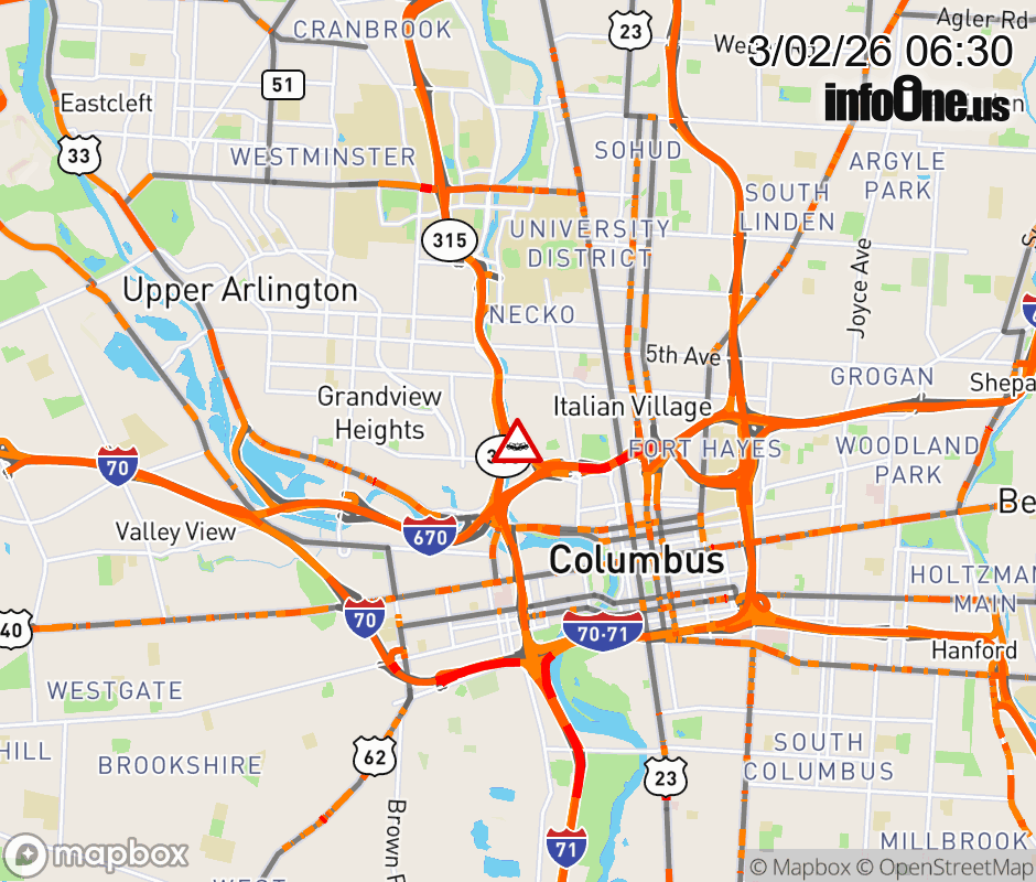 Expect lane closures on Ramp I-670 West to SR-315 North, due to a crash. ![]() |