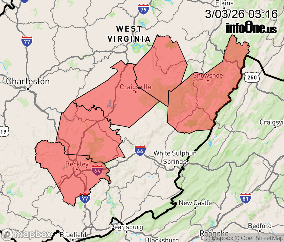 Canceled 3/3/26 9:46 AM Winter Weather Advisory issued March 3 at 3:14AM EST until March 3 at 10:00AM EST by NWS Charleston WV * WHAT... Freezing rain. Additional ice accumulations around a light glaze. Additional snowfall accumulations of less than an inch are also possible. * WHERE... Southeast Pocahontas, Southeast Webster, Southeast Fayette, Southeast Nicholas, and Southeast Raleigh Counties. * WHEN... Until 10 AM EST this morning. * IMPACTS... Very slippery sidewalks, roads and bridges are possible. A few power outages and downed trees may also occur. The hazardous conditions may impact the morning commute. ![]() |