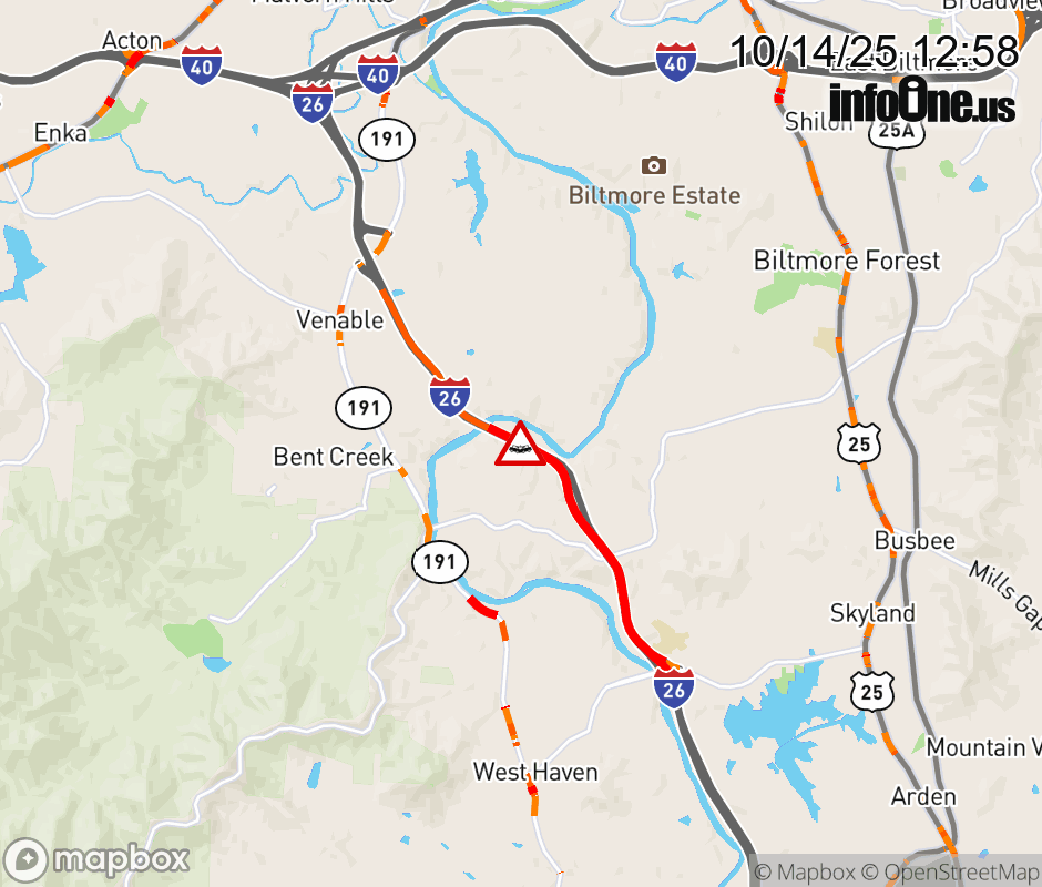 The right shoulder is closed 2 miles after Exit 37, NC 146 (Long Shoals Road). Updated: Tue 10/14/25 12:58 PM EDT ![]() Updated: Tue 10/14/25 12:58 PM EDT |