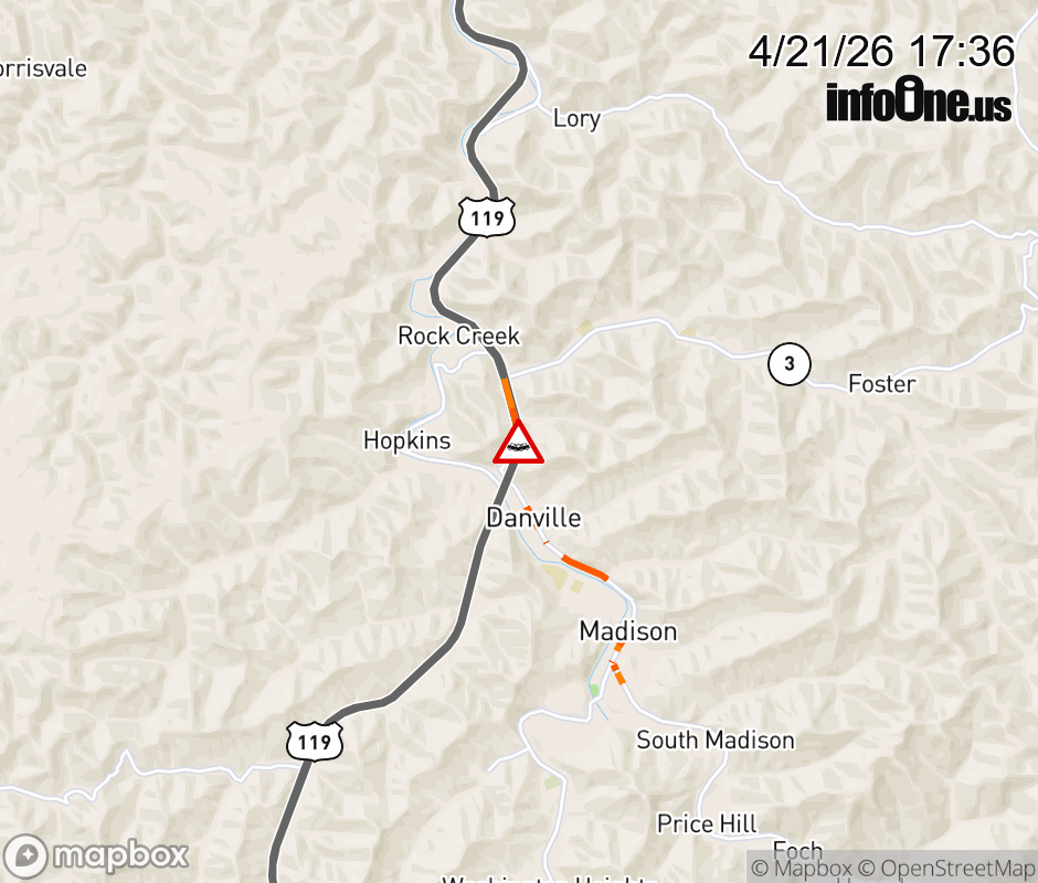 Vehicle Crash on US-119 SB at WV-85. The southbound right lane is closed. ![]() |