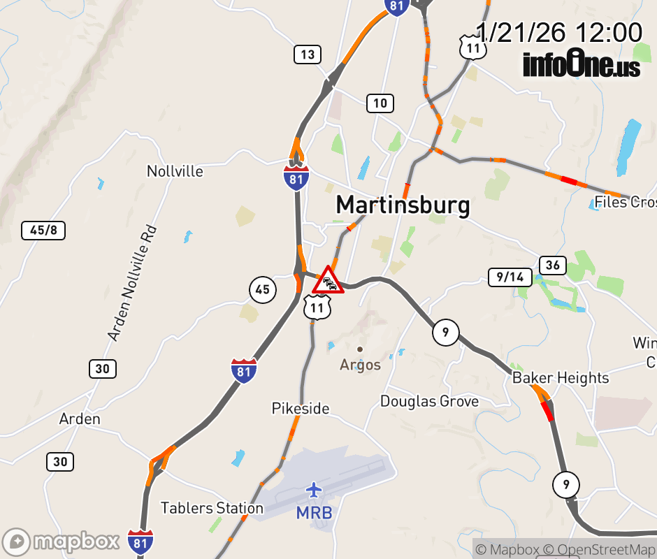 Road Closure on US-11 Intersection Winchester Rd & WV-45 Apple Harvest Dr. The southbound road is closed. The northbound road is closed. ![]() |