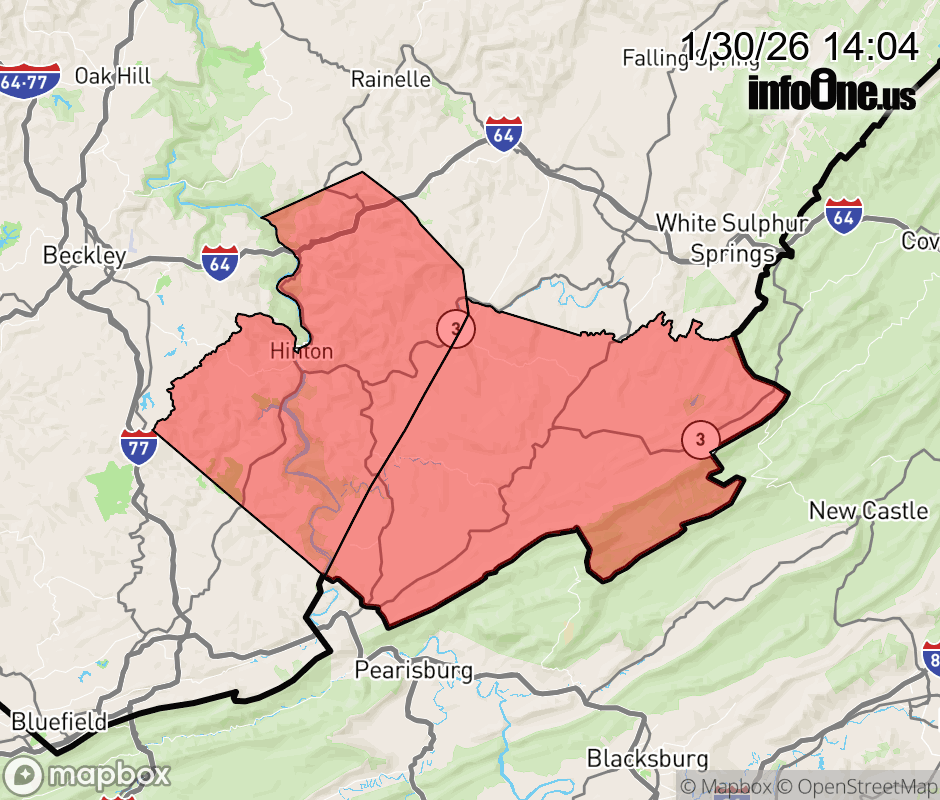 Canceled 1/30/26 8:24 PM Winter Weather Advisory issued January 30 at 2:02PM EST until February 1 at 1:00PM EST by NWS Blacksburg VA * WHAT... Snow. Total accumulations of 1 to 3 inches. Winds gusting as high as 45 mph. * WHERE... Monroe and Summers Counties. * WHEN... Until 1 PM EST Sunday. * IMPACTS... Plan on slippery road conditions. The hazardous conditions could impact the Friday evening commute. Gusty winds could bring down tree branches. * ADDITIONAL DETAILS... Strong winds Saturday night into Sunday will result in blowing and drifting snow...reducing visibility at times. ![]() |