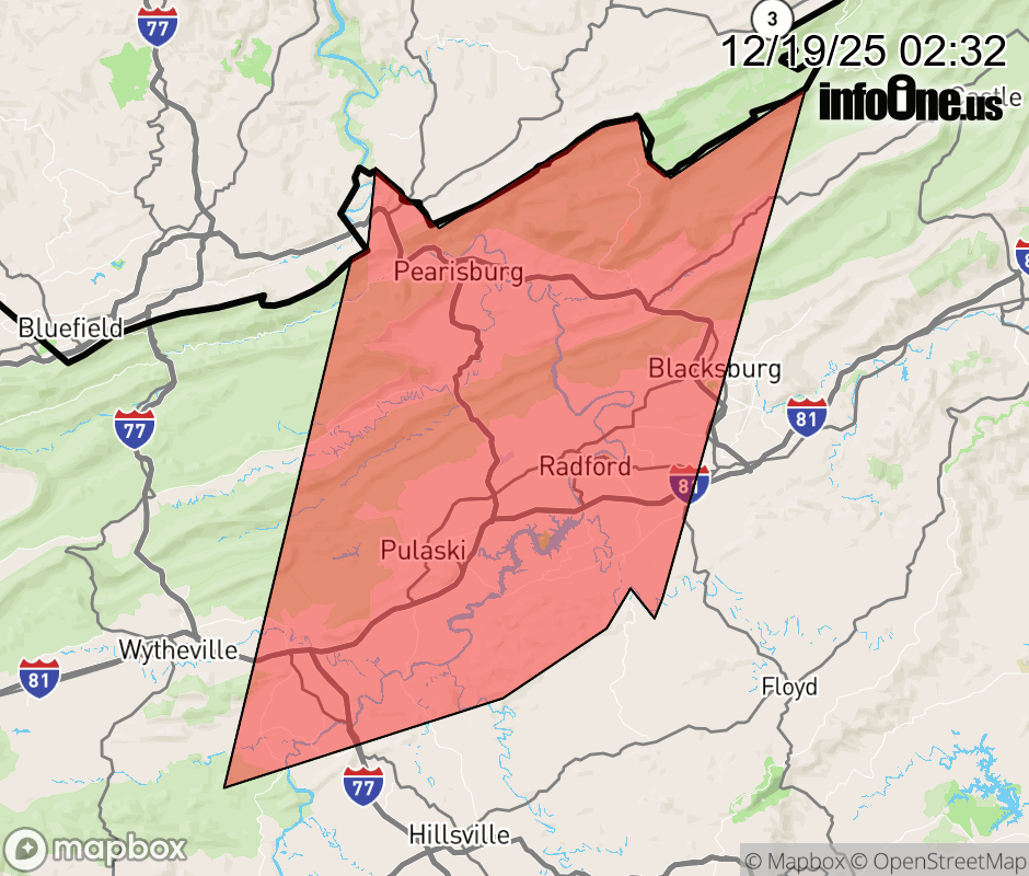 Canceled 12/19/25 3:00 AM Special Weather Statement issued December 19 at 2:31AM EST by NWS Blacksburg VA At 231 AM EST, Doppler radar was tracking heavy rain showers along a line extending from near Kimballton to near Ivanhoe. Movement was east at 45 mph. HAZARD...Wind gusts up to 40 mph. SOURCE...Radar indicated. IMPACT...Gusty winds could knock down tree limbs and blow around unsecured objects. Locations impacted include... Blacksburg... Christiansburg... Radford... Pulaski... Pearisburg... Dublin... and Narrows. ![]() |