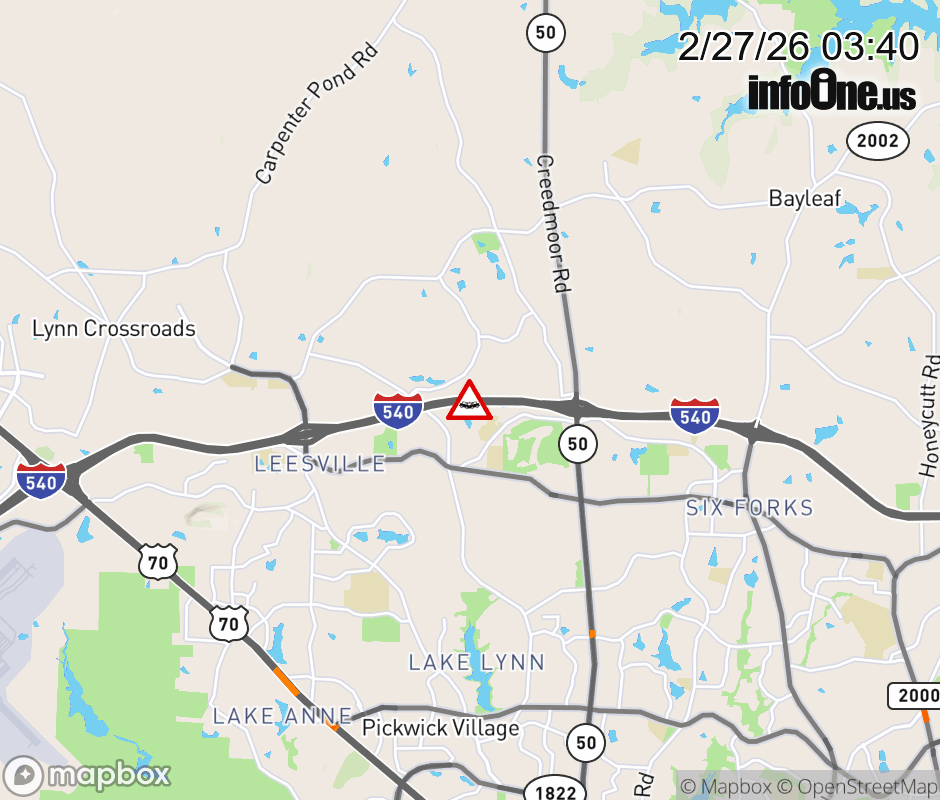 Canceled 2/27/26 5:02 AM Location: I-540W at MM 9, NC Vehicle Crash.