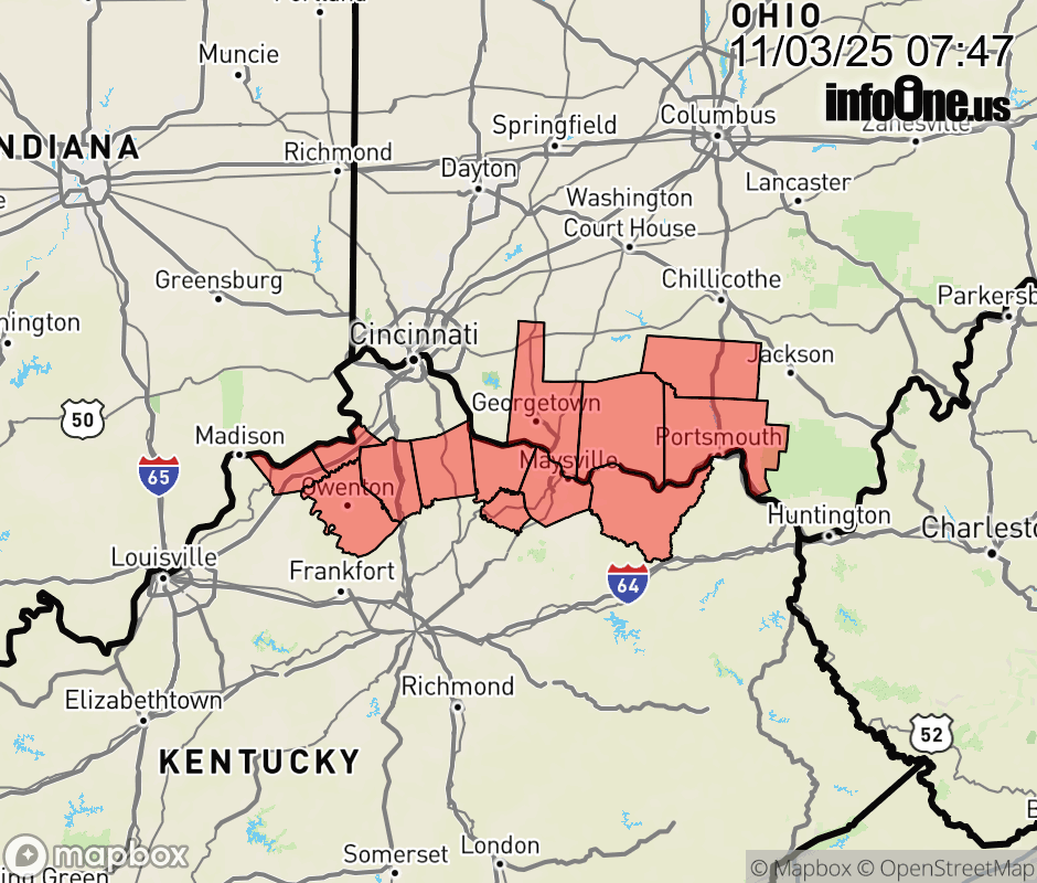 Canceled 11/3/25 8:57 AM Dense Fog Advisory issued November 3 at 7:45AM EST until November 3 at 9:00AM EST by NWS Wilmington OH * WHAT... Visibility below a quarter mile at times in dense fog. * WHERE... Portions of northeast and northern Kentucky and south central and southwest Ohio. * WHEN... Until 9 AM EST this morning. * IMPACTS... Low visibility could make driving conditions hazardous. ![]() |