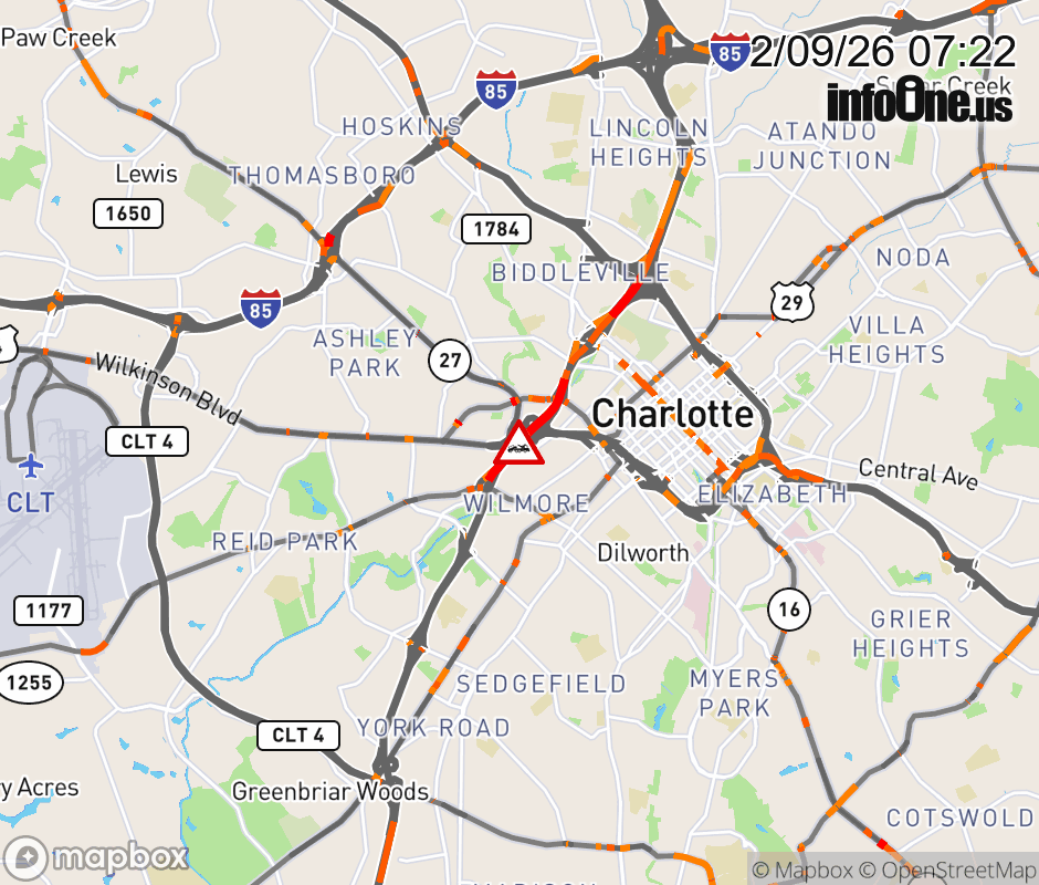 The center lane is closed at Exit 9 (I- 277 ). ![]() |