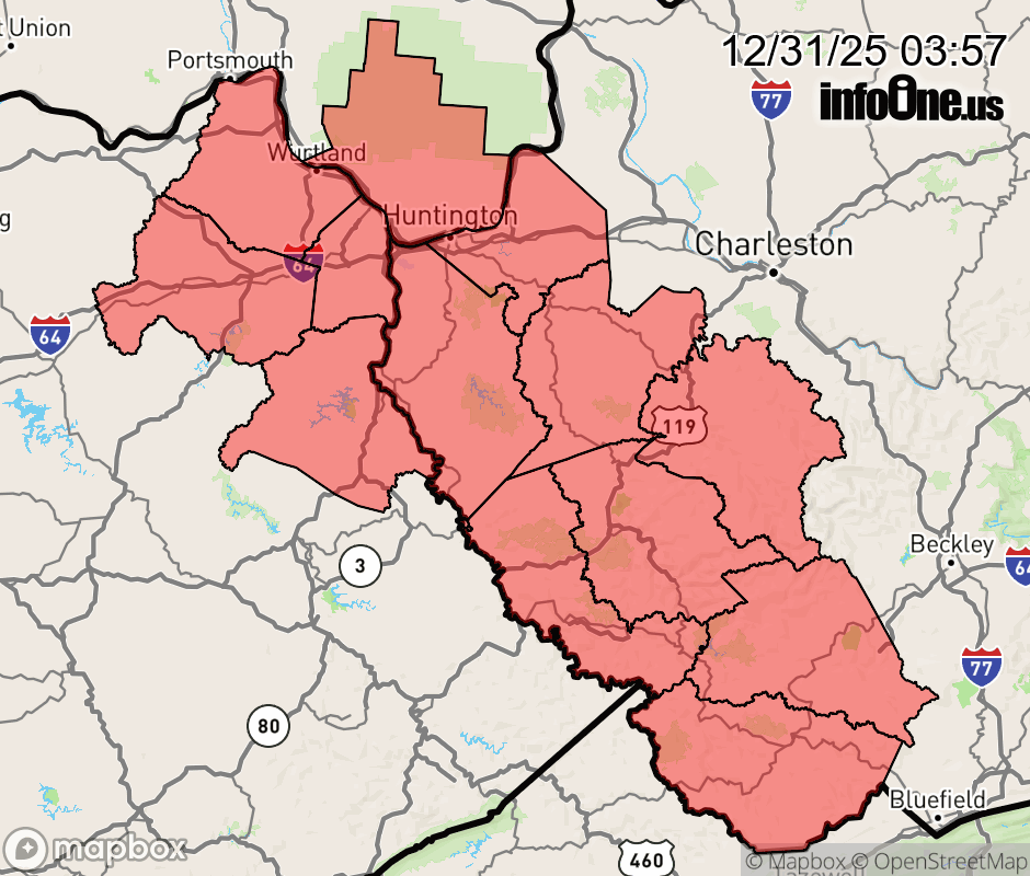 Canceled 12/31/25 5:30 AM Special Weather Statement issued December 31 at 3:56AM EST by NWS Charleston WV Areas of light snowfall will move across the Huntington Tri-State area and the southern coalfields late tonight into the early morning hours of Wednesday. Accumulations are expected to be light, but could cause slick roads and bridges across the area. Motorists are encouraged to use extra caution when driving over the next couple of hours, and allow extra distance to the car in front of them and extra time to reach their destination. ![]() |