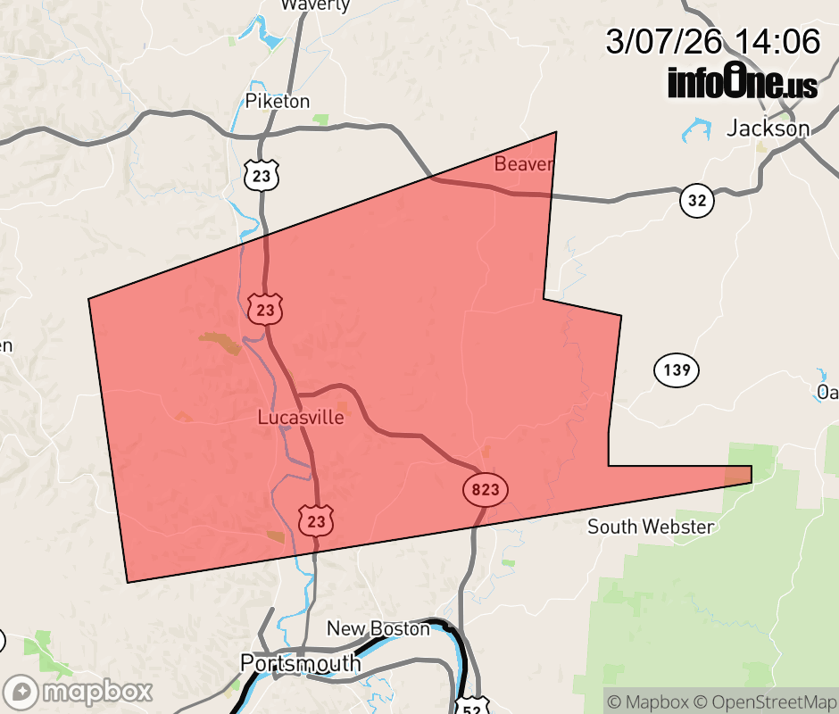 Canceled 3/7/26 2:30 PM Special Weather Statement issued March 7 at 2:05PM EST by NWS Wilmington OH At 204 PM EST, a strong thunderstorm was located over Lucasville, moving east at 50 mph. HAZARD...Wind gusts up to 50 mph and half inch hail. SOURCE...Radar indicated. IMPACT...Gusty winds could knock down tree limbs and blow around unsecured objects. Hail may cause minor damage to vegetation. Locations impacted include... Clarktown, Lucasville, Rosemount, Beaver, Lombardsville, Wakefield, Stockdale, Minford, State Route 335 at State Route 776, Mcdermott, Portsmouth Regional Airport, Bear Creek, and Germany. ![]() |