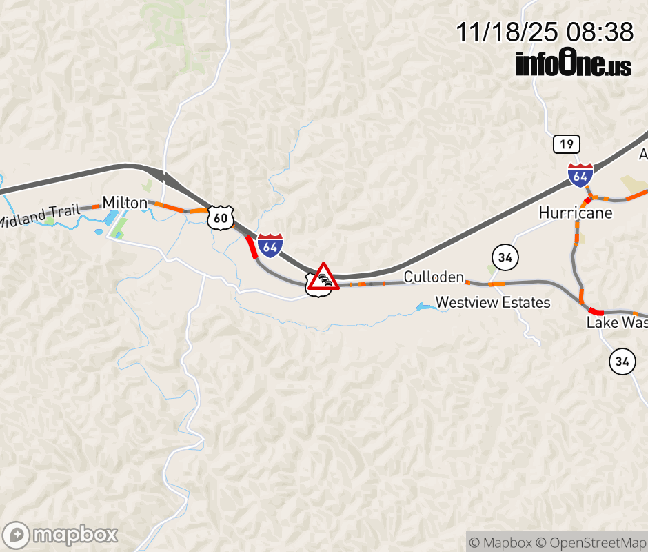 Vehicle Fire on I-64E at Mile Marker 30.0. Updated: Tue 11/18/25 8:38 AM EST ![]() Updated: Tue 11/18/25 8:38 AM EST |