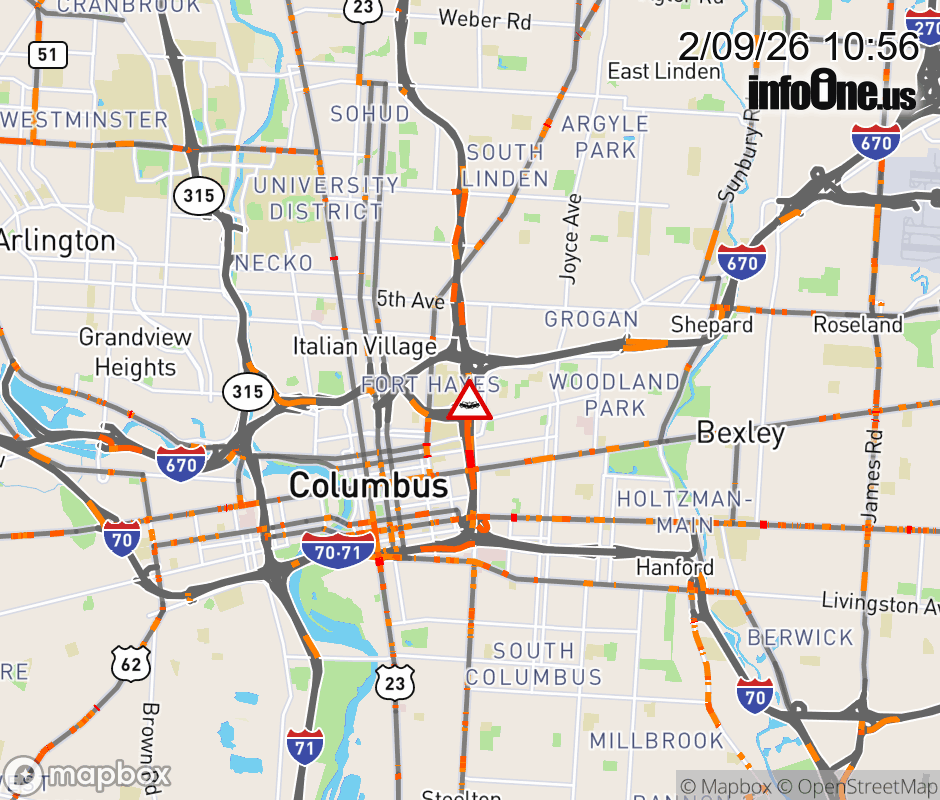 The 2 right lanes are blocked on I-71 North beyond I-670 West, due to a crash. Updated: Mon 2/9/26 10:56 AM EST ![]() Updated: Mon 2/9/26 10:56 AM EST |
