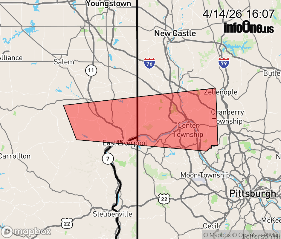 Canceled 4/14/26 4:27 PM Severe Thunderstorm Warning issued April 14 at 4:05PM EDT until April 14 at 4:45PM EDT by NWS Pittsburgh PA SVRPBZ The National Weather Service in Pittsburgh has issued a * Severe Thunderstorm Warning for... Southeastern Columbiana County in east central Ohio... Central Beaver County in western Pennsylvania... Hancock County in northern West Virginia... * Until 445 PM EDT. * At 405 PM EDT, a severe thunderstorm was located near Lisbon, or 9 miles northwest of Wellsville, moving east at 45 mph. HAZARD...Quarter size hail. SOURCE...Radar indicated. IMPACT...Damage to vehicles is expected. * Locations impacted include... East Liverpool, Aliquippa, Beaver Falls, Monaca, Economy, Ambridge, New Brighton, Beaver, Calcutta, Baden, Rochester, Ohioville, Harmony Township, Midland, Chester, Industry, Shippingport and Patterson Township. ![]() |