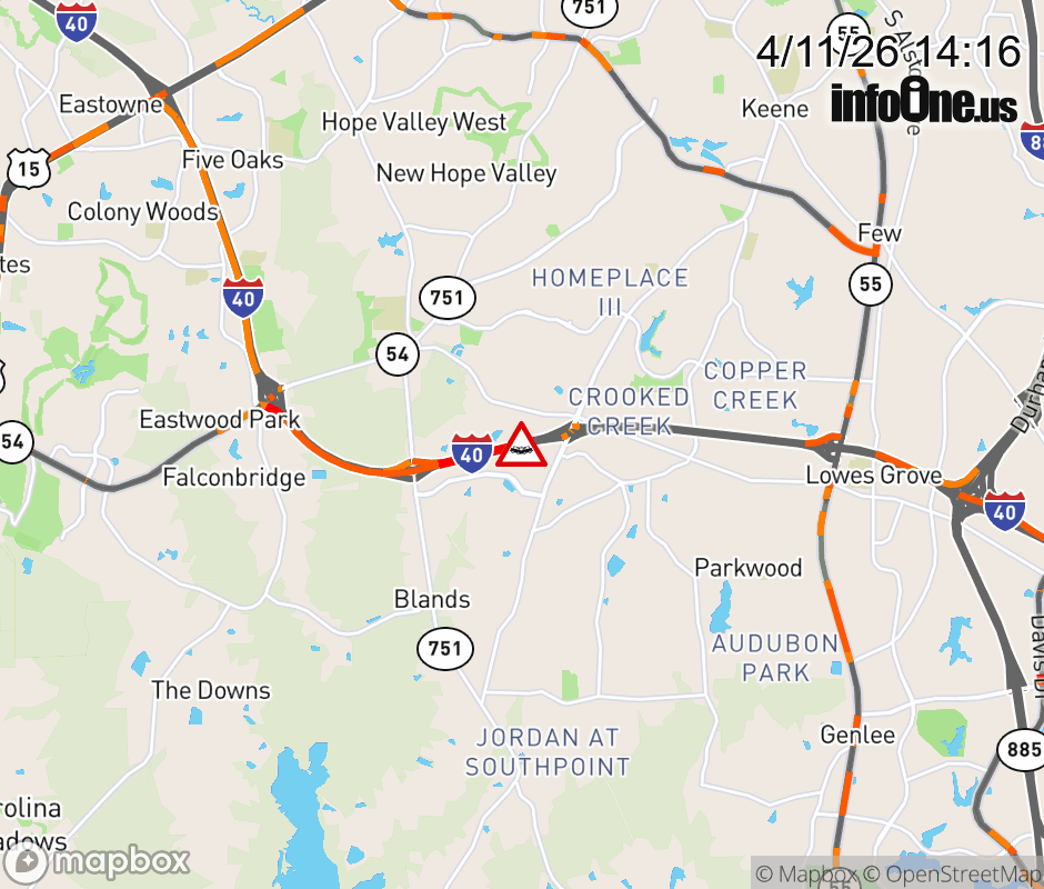The left lane is closed before Exit 276 (Fayetteville Rd). Updated: Sat 4/11/26 2:16 PM EDT ![]() Updated: Sat 4/11/26 2:16 PM EDT |