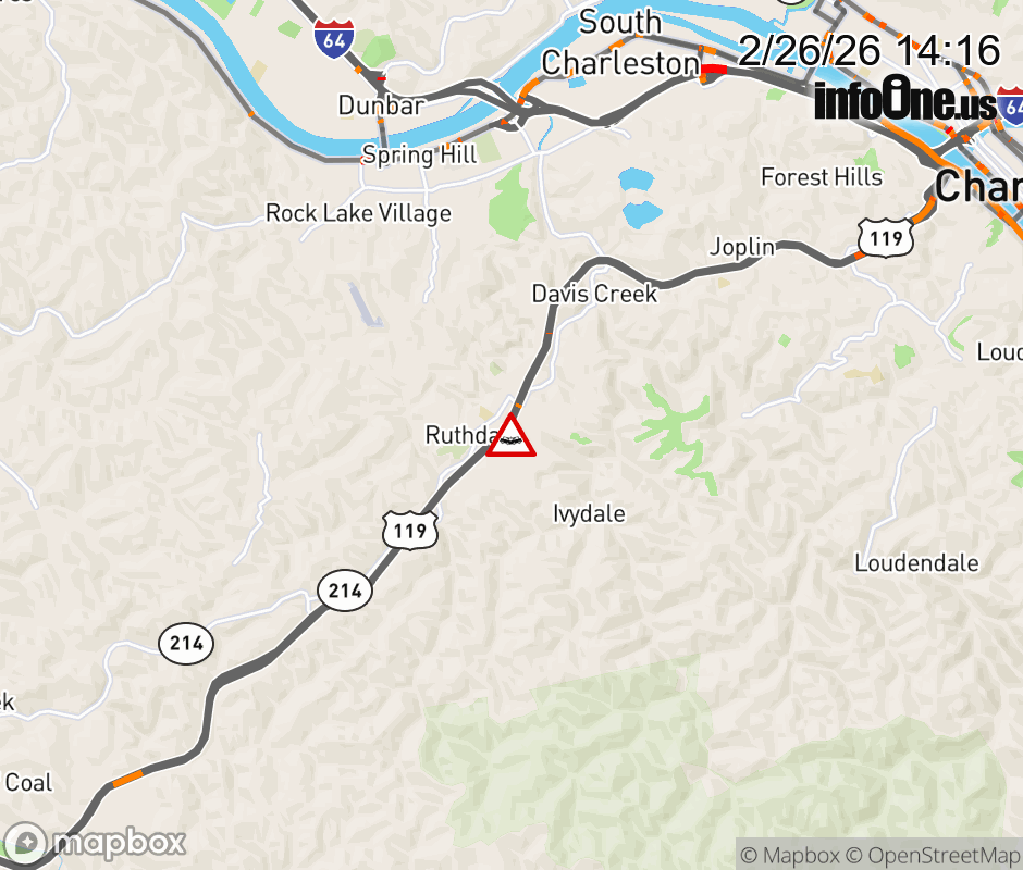 Vehicle Crash on CR-119/81 (Southridge Blvd) & Mountaineer Blvd in South Charleston. The eastbound right lane is closed. Updated: Thu 2/26/26 2:16 PM EST ![]() Updated: Thu 2/26/26 2:16 PM EST |