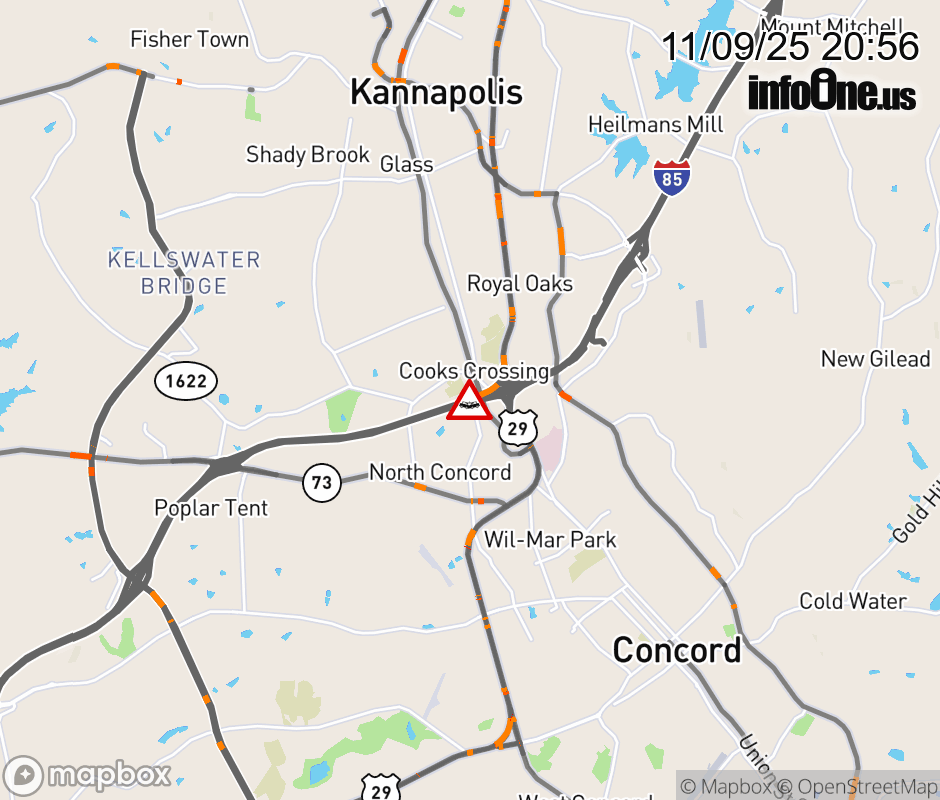 The three lanes are closed past Exit 58 (US 29). ![]() |