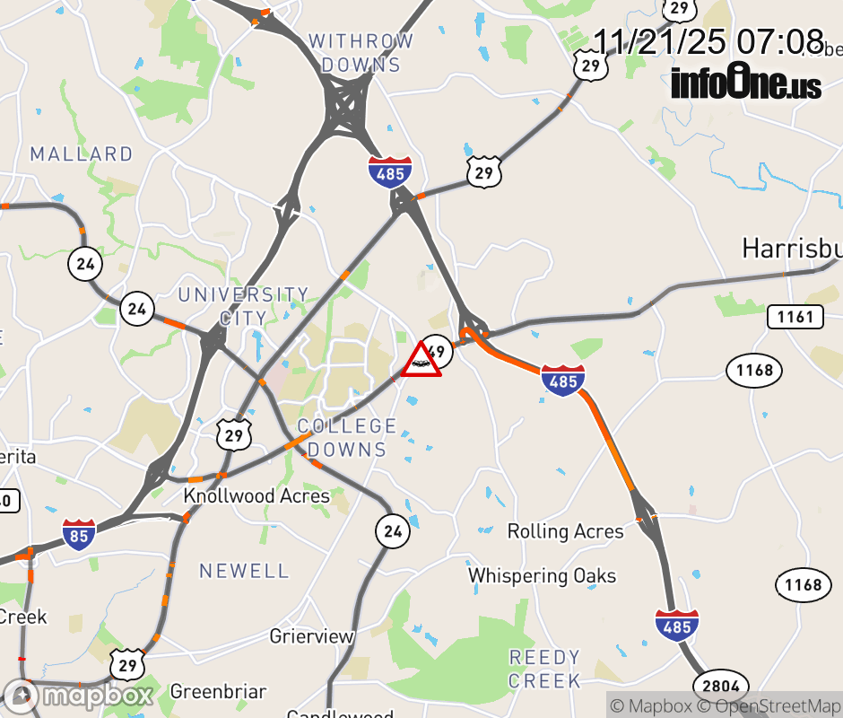 The right lane is closed at Mallard Creek Church Rd. ![]() |