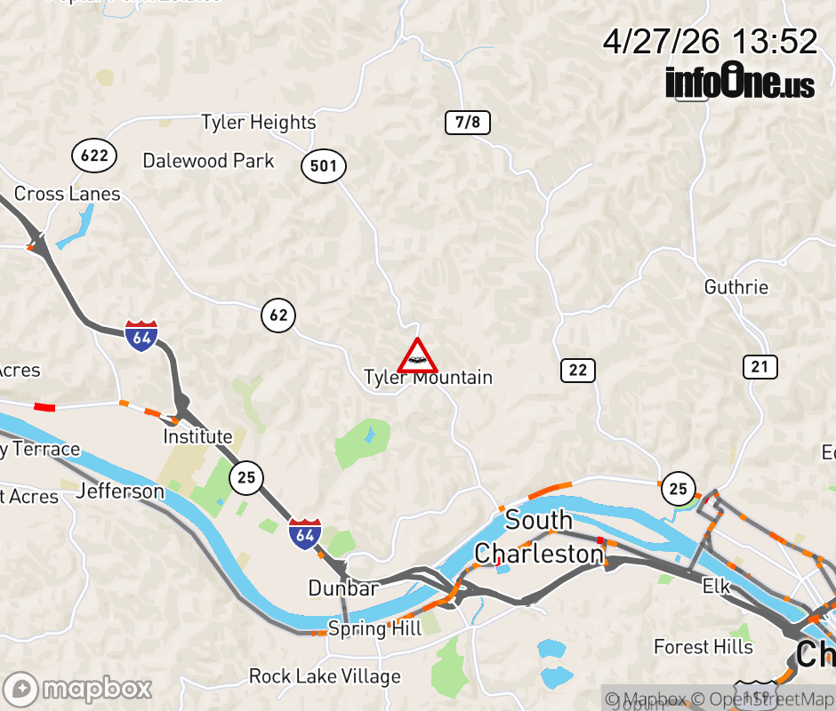 Vehicle Crash on WV-501 (Big Tyler Rd) - Between CR-59 (Victoria Rd) & Lincoln Dr in Cross Lanes. The northbound road is closed. The southbound road is closed. ![]() |