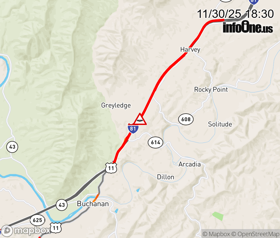 Canceled 11/30/25 6:38 PM Location: I-81S at MM 169.4, VA