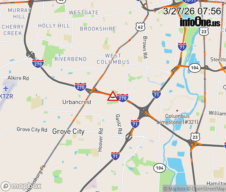The left shoulder is blocked on I-270 East beyond US-62/SR-3, due to a crash. ![]() |