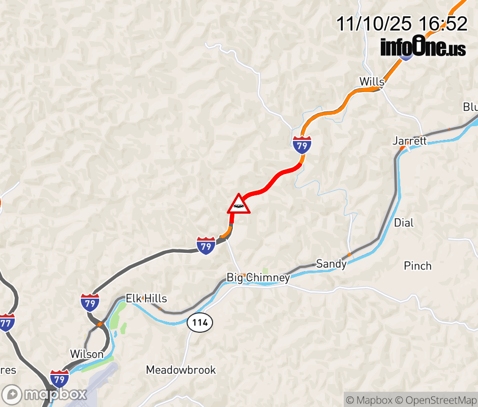 Vehicle Crash on I-79N at Mile Marker 6.0. Updated: Mon 11/10/25 4:52 PM EST ![]() Updated: Mon 11/10/25 4:52 PM EST |