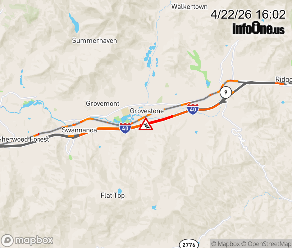 The right shoulder is closed 2.5 miles west of Exit 64, NC 9. Updated: Wed 4/22/26 4:02 PM EDT ![]() Updated: Wed 4/22/26 4:02 PM EDT |