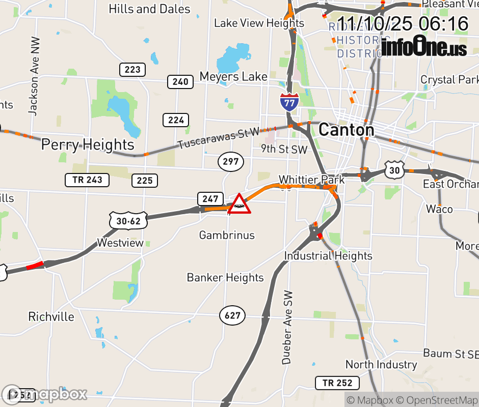 Expect lane closures on US-30/US-62 West at SR-297/Raff Rd, due to a crash. ![]() |