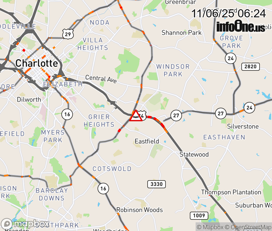 The center lane is closed at Exit 245B (Eastway Dr.). ![]() |