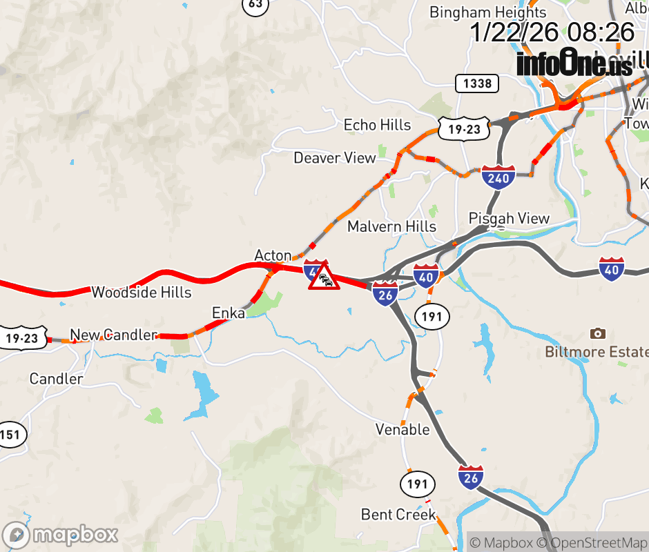 The right lane is closed after Exit 44, US-19 (Smokey Park Highway). Updated: Thu 1/22/26 8:26 AM EST ![]() Updated: Thu 1/22/26 8:26 AM EST |