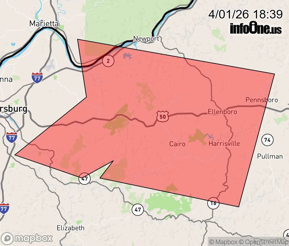 Canceled 4/1/26 6:45 PM Severe Thunderstorm Warning issued April 1 at 6:38PM EDT until April 1 at 6:45PM EDT by NWS Charleston WV The storm which prompted the warning has moved out of the area. Therefore, the warning will be allowed to expire. However, small hail, gusty winds and heavy rain are still possible with this thunderstorm. A Severe Thunderstorm Watch remains in effect until 800 PM EDT for southeastern Ohio...and northwestern West Virginia. ![]() |