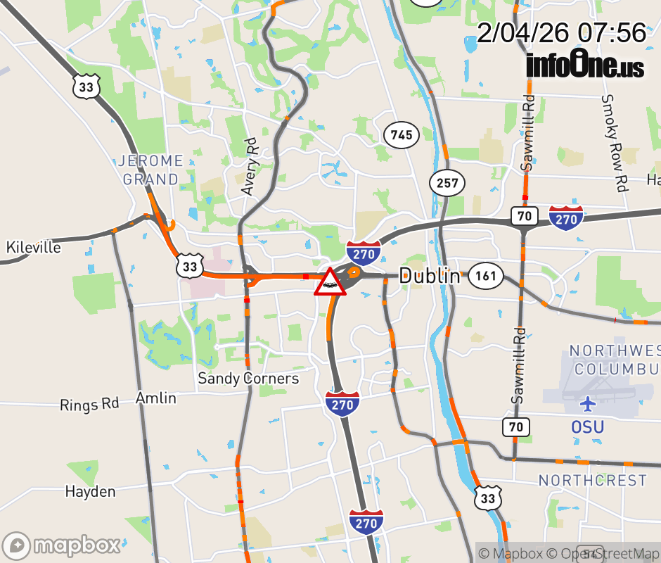 Expect lane closures on Ramp US-33/SR-161 East to I-270 South, due to a crash. ![]() |