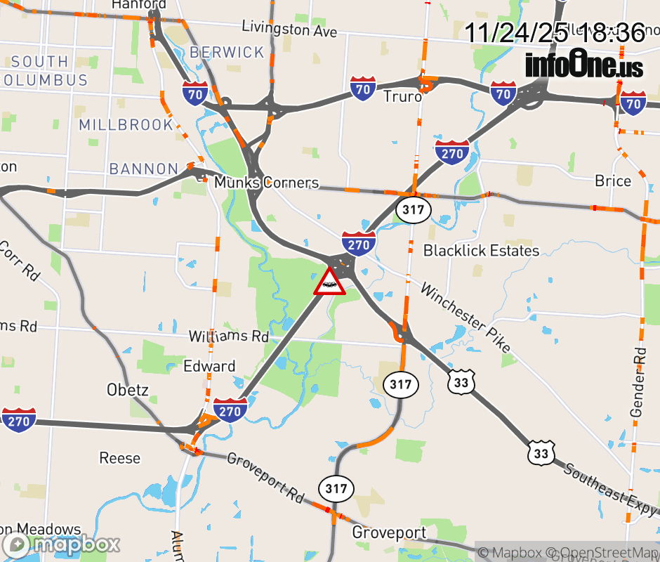 The left shoulder is blocked on I-270 South beyond US-33 East, due to a crash. ![]() |
