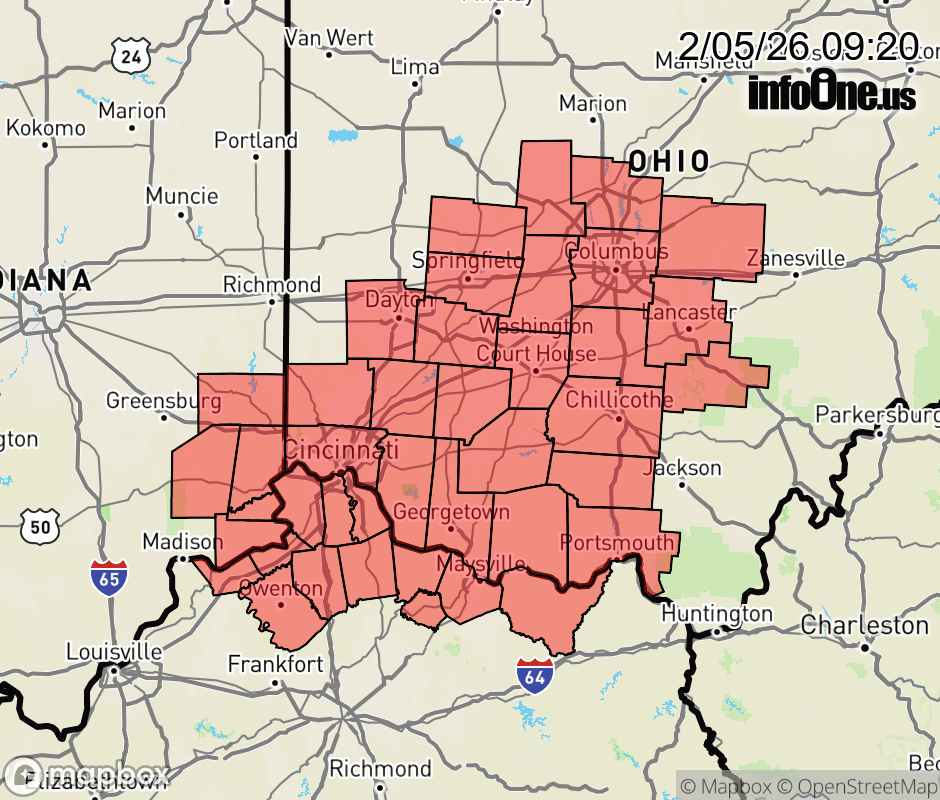 Canceled 2/5/26 11:30 AM Special Weather Statement issued February 5 at 9:19AM EST by NWS Wilmington OH Locally dense fog has developed this morning in the very light flow. The fog will result in rapidly changing conditions with visibilities reduced to less than 1/4 mile in locations. Motorists are advised to prepare for rapidly changing conditions and allow extra time to reach your intended destination. The visibility will slowly improve through late morning. ![]() |